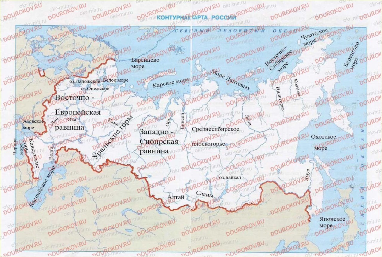 С помощью карты в учебнике (с. 58-59) подпиши на контурной карте (с. 30-31) крупнейшие равнины и горы нашей страны
