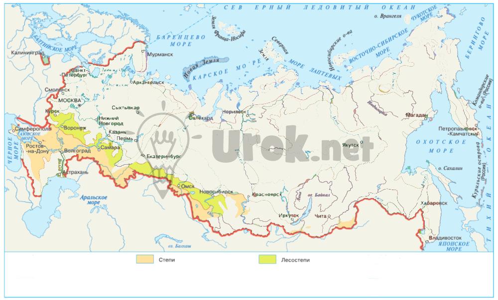 Какая зона, расположенная между степями и лесными зонами, осталось незакрашенной? Закрась ее дома.