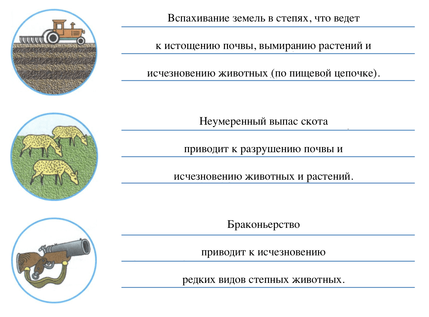 Подумайте, какие экологические проблемы степной зоны выражены этими знаками. Сформулируйте и запишите.
