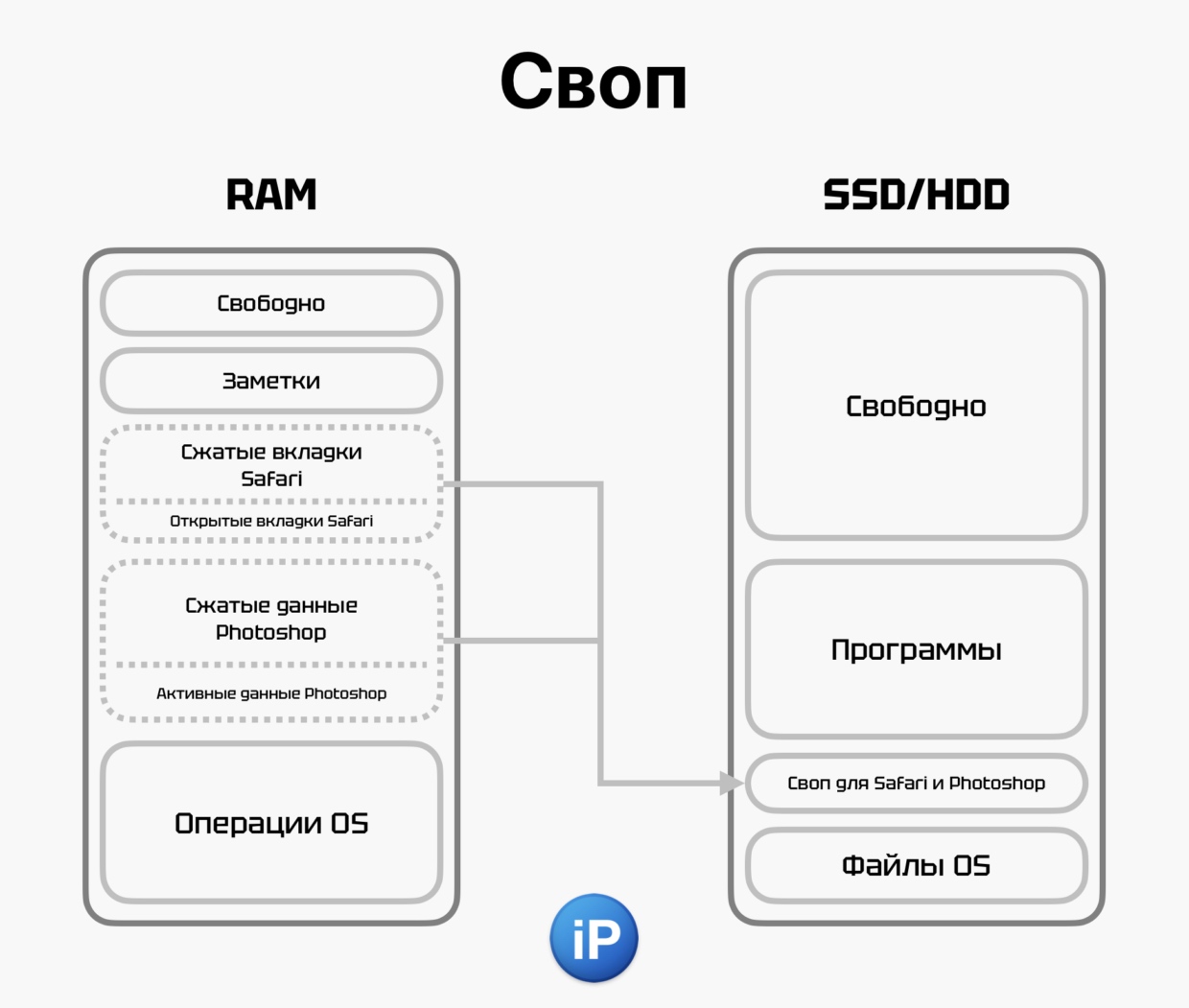 Своп заменяет оперативную память на SSD