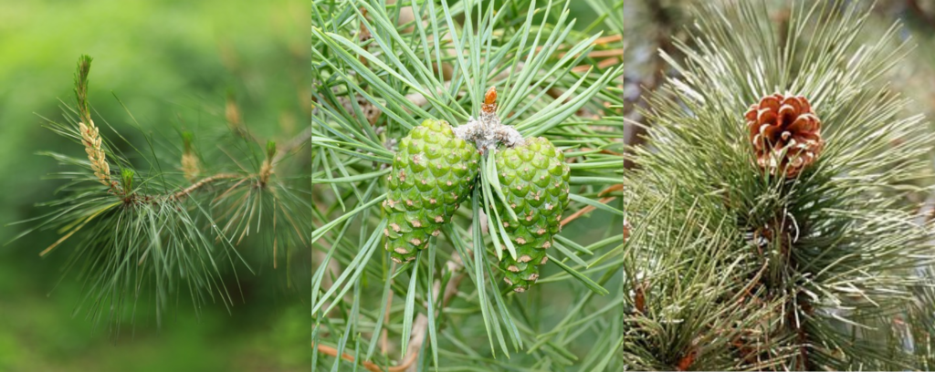 Мужские шишки сосны зеленовато-жёлтые, растут группами у оснований молодых побегов. Женские – одиночные, красноватого или зеленоватого цвета, растут на вершинах молодых веток.