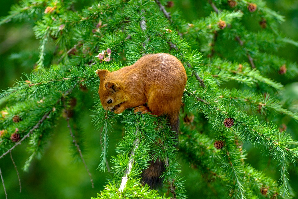 Белки с удовольствием лакомятся семенами хвойных растений